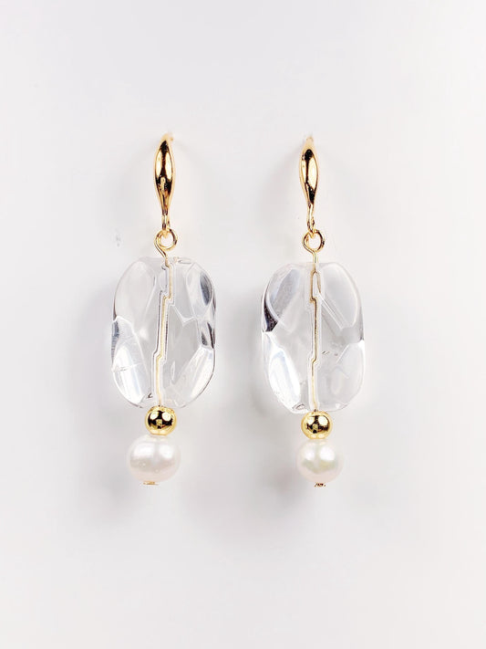 14K Gold Filled Pearl & Quartz Earrings: Natural Freshwater Pearl