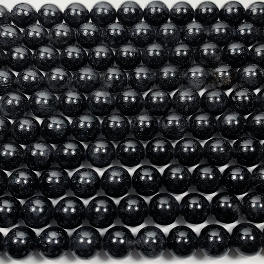 10mm Black Tourmaline Rutilated Quartz Beads: 15.5" Strand