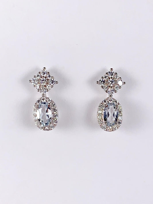 Aquamarine Sterling Silver Earrings: 18k Gold Plated, Oval Cut