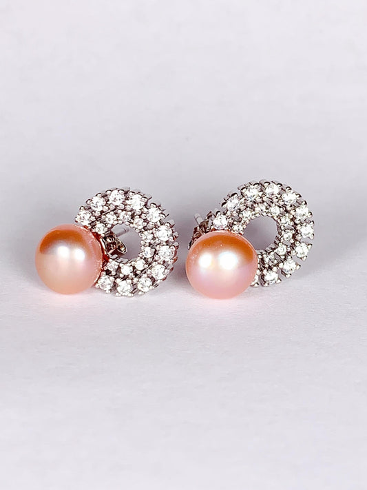 AAA Orange Pearl Earrings: 18k Gold Plated Sterling Silver Studs
