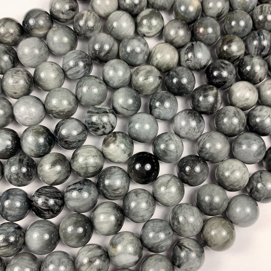 10mm AAA Natural Black Gray Hawks eye Smooth Round Beads: Gemstone Strand, 15.5"