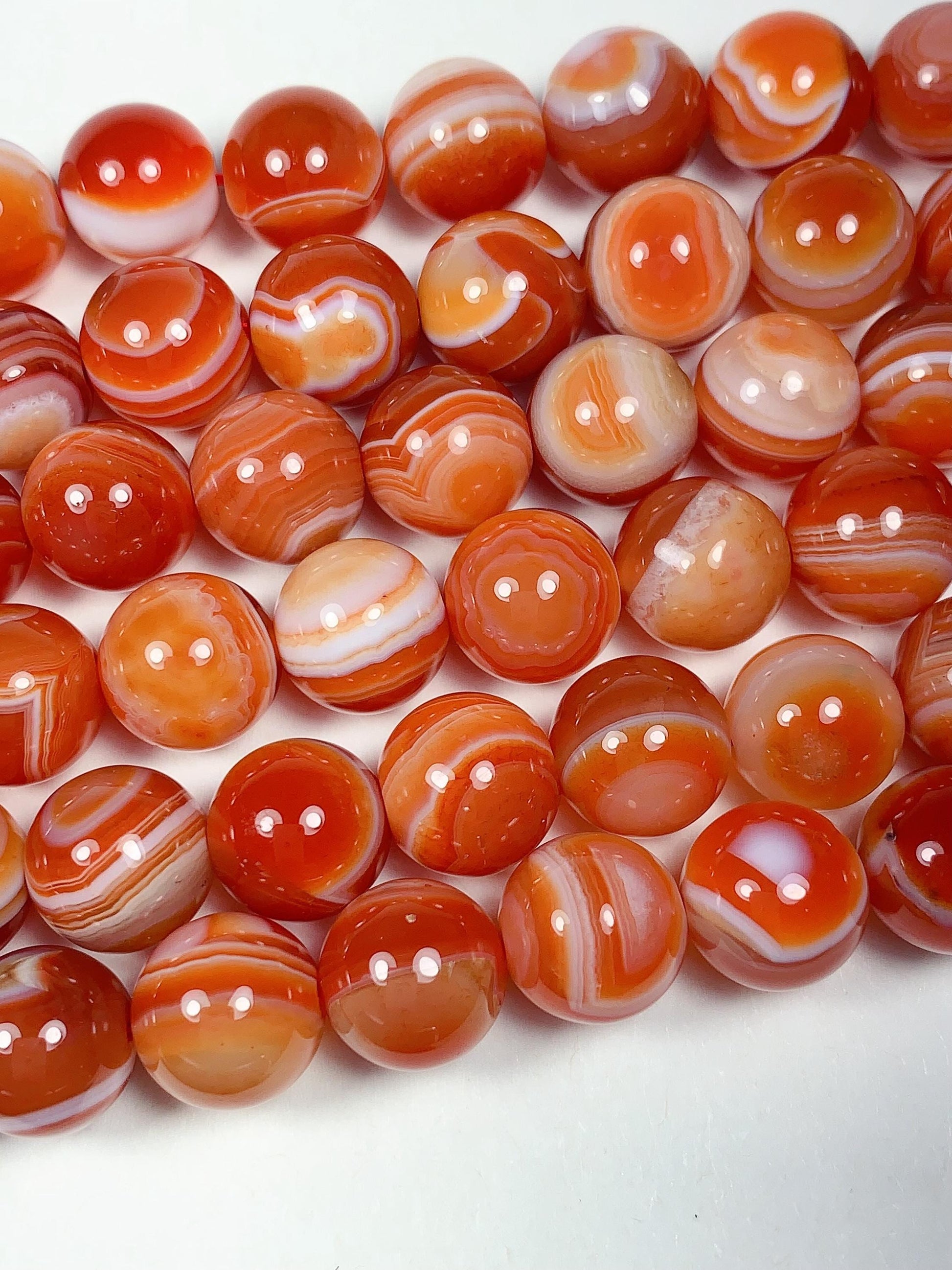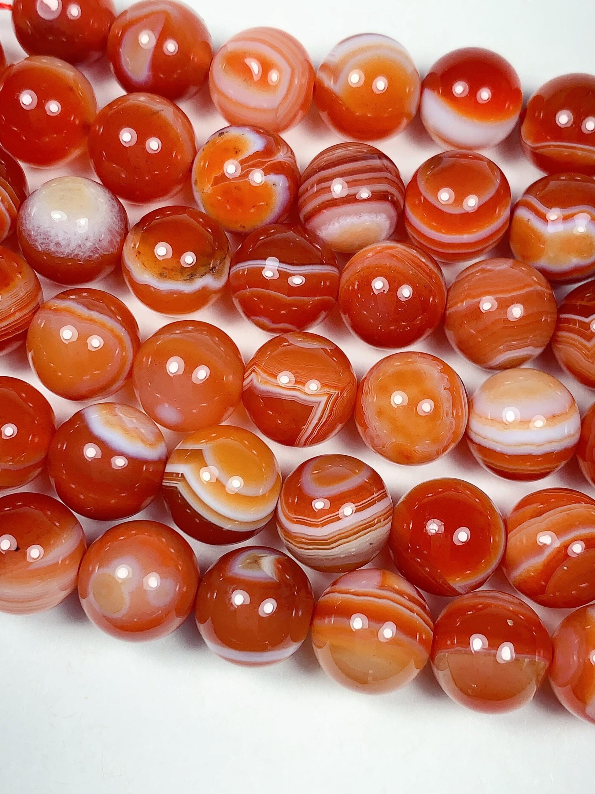 10mm AAA+ Natural Red Striped Agate Smooth Round Beads 15.5 Strand Gemstone
